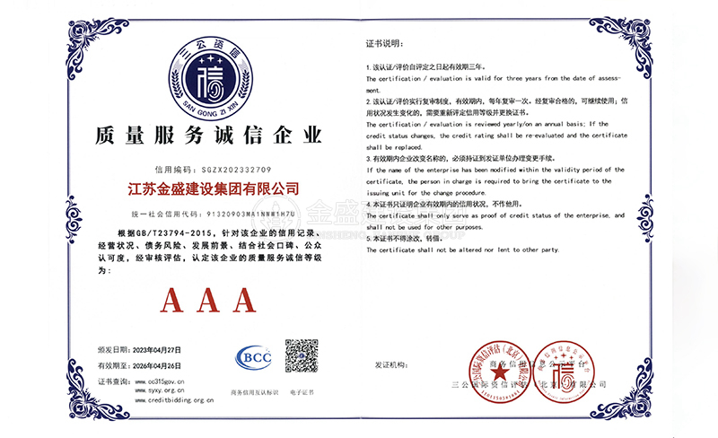 • 3A級(jí)資信等級(jí)證書